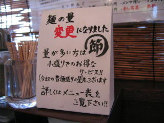 小盛りではお得なサービスがあるようですが、詳細は不明です。