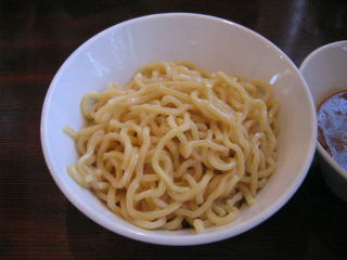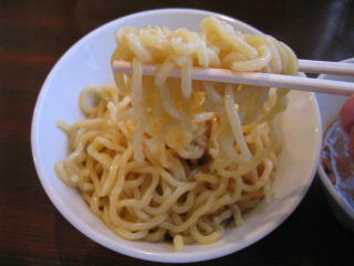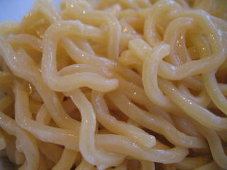 縮れの強い、腰のある、硬い麺です。