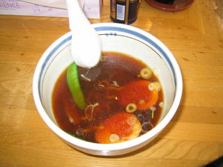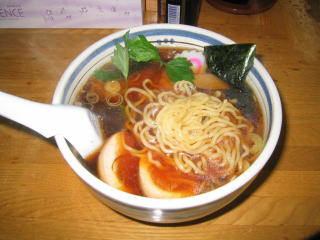 ちょっとしょっぱめのしょうゆ味のスープです。麺は中太麺ほぼストレートです。